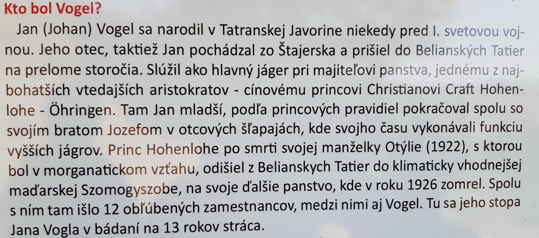 Zakrátko stretávame výpravnú info tabuľu. Kopec zaujímavostí, viď fotogalérku. Hlavné info: autorom chodníka je syn rakúskeho lesníka, ktorého kedysi dávno doviedol na svoje slovenské panstvo knieža Hohenlohe... Syn bol tiež lesník.