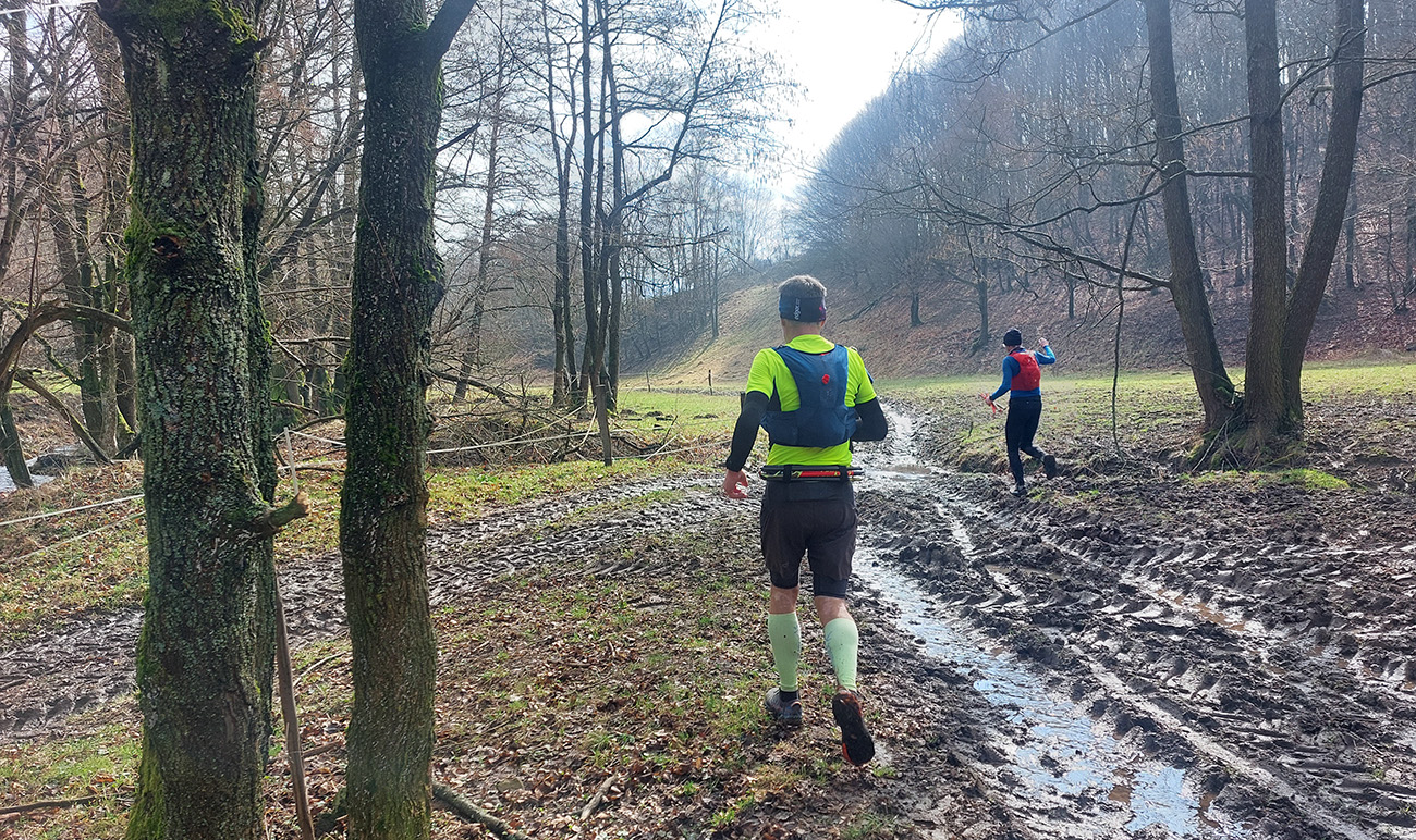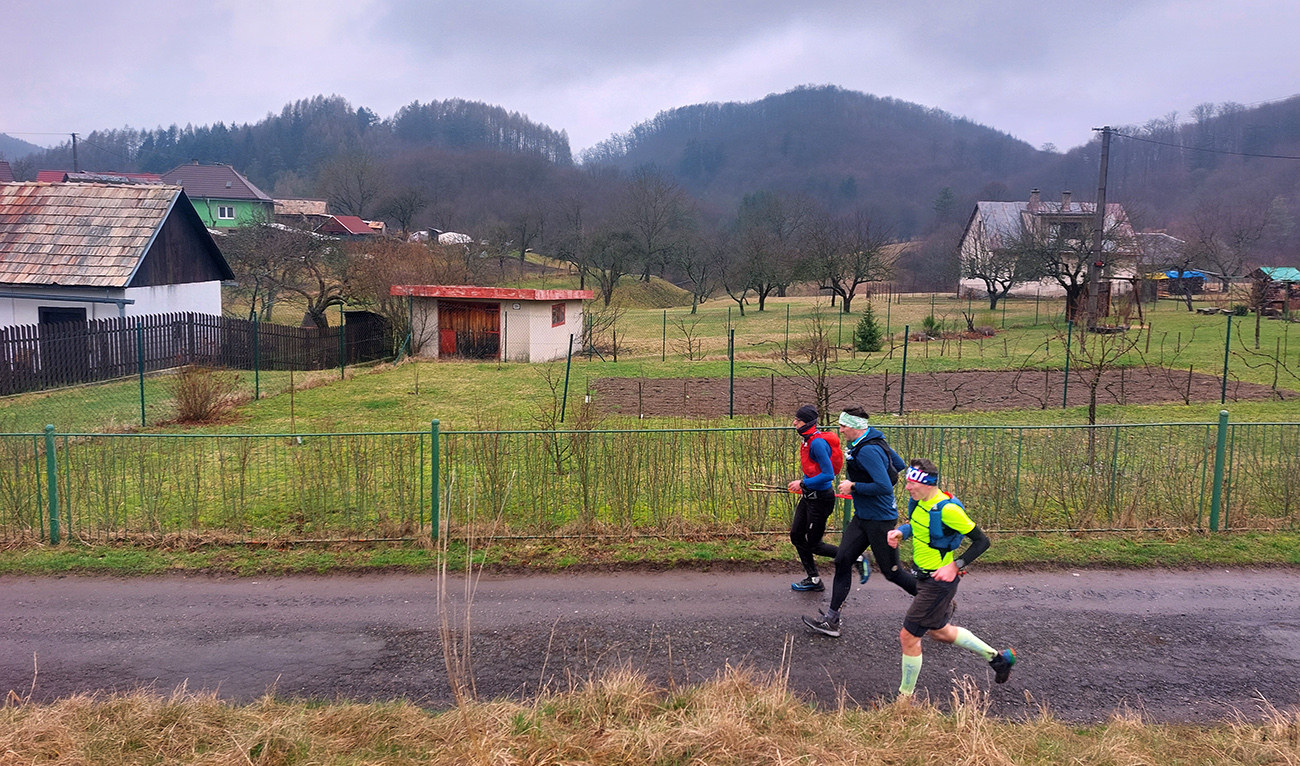Keď je človek navnadený nekonečnými možnosťami pobehovania po zaujímavých miestach Štiavnických vrchov, príde domov z jednej pobehovačky a hneď plánuje ďalšiu. A keď sa plánmi pochváli a tie sa ostatným zapáčia, hneď sa kujú plány na spoločný výbeh. A keď k prvej spoločnej akcii v roku dôjde, vznikne toto tu. Cestou na miesto činu vyvstala v podstate len jediná závažná otázka - kto bude tentokrát za brzdu, lemru, slimáka dýchavičného, a teda za huspeninového psa. A pretože v aute padali silné reči o Dolomitoch, Lavaredach, Cortinach d Ampezzo, Chamonixoch, nízkosacharidových diétach a serióznych tréningových metódach, pôvodnému Psovi bolo veľmi rýchlo všetko jasné. Aj fotky z akcie tu dole v galérii, fotené väčšinou odzadu, sú jasným dôkazom. Tak sa začínal „tešiť“, aký zase príde domov rozmlátený po necelých 35 kilákoch, lebo takéto si vymyslel kolečko okolo Banskej Belej: