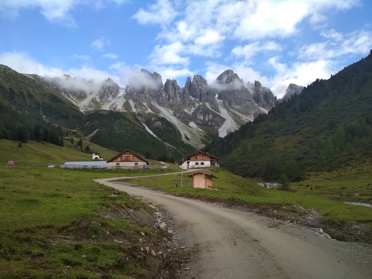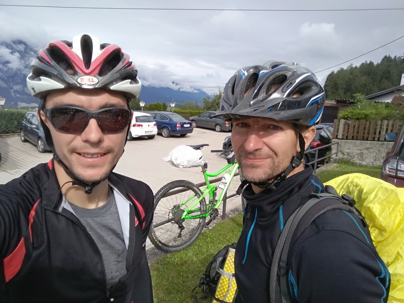 Musel som počkať, kým pôjdu deti do školy, aby som mohol ísť, preto až september. V júni som sa zas obával snehu v sedlách. Samozrejme, že som strávil hodiny za internetom, aby som aspoň ako tak ponachádzal správnu cestu, ktorou chcem ísť. Najprv som chcel končiť na Garde, no dostať sa odtiaľ vlakom späť niekam do Nemecka zaberie zbytočne čas, ktorý môžem stráviť radšej na bicykli. Až keď sme boli na diaľnici niekde pri Salzburgu, tak som sa pevne rozhodol, že vyrazíme z dedinky Grinzens pár kilometrov od Innsbrucku. Tu sme nechali auto pri miestnej krčme a popoludní o 16.00 sme vyrazili plní odhodlania smerom na chatu Adolf Pichler Hutte.