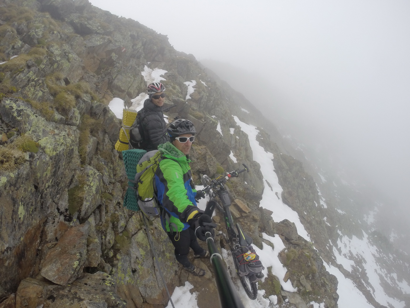 Ráno nás čaká ďalší skvost - Eisjoch. Sedlo označované za topku v Alpách. Vystúpať do sedla však znamená nastúpať na jeden záťah 1900 v.m. Asfaltkou, šotolinou a od salaša chodníčkom. Chodníček je však veľmi kvalitný, nielen vychodený, ale vybudovaný. Zrejme tadiaľ ľudia prechádzajú z údolia do údolia už stovky rokov. Sú tu vybudované serpentíny, mostíky, oporné múriky. Nie všetko sa dá vyšliapať v sedle, avšak väčšina áno. Eisjoch navyše ponúka možnosť nechať bajk na chvíľu opretý pri chate a vybehnúť si naľahko na Hohe Wilde 3480 m.n.m.