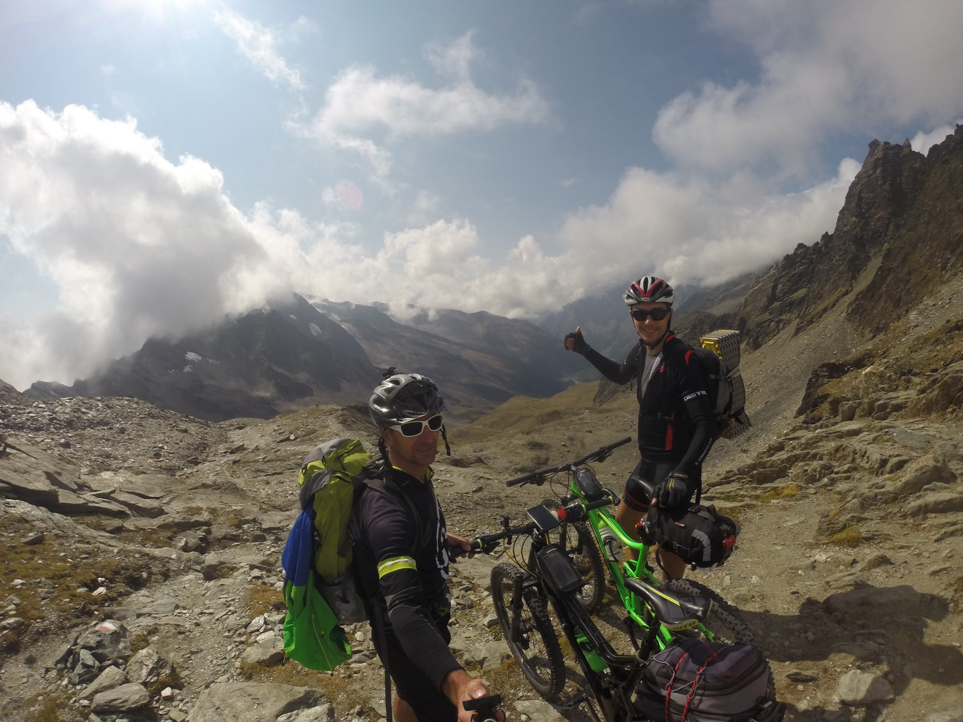 Alpy mi učarovali natoľko, že čím viac som tam chodil, tým viac krás a možností mi odhaľovali. Článok o Transalpe z Vela však stále driemal v mojej hlave a ja som si stále predstavoval, ako prekonávam alpské hrebene na MTB, naľahko, z doliny do doliny, nevraciam sa večer späť k autu a všetko potrebné na tých pár dní mám stále so sebou. Tento rok som už bol odhodlaný svoj sen realizovať stoj, čo stoj. Nehľadal som k sebe nikoho, lebo som vedel, že nechcem ísť viac ako vo dvojici a ak nebude s kým, tak pôjdem aj sám. Moja myšlienka sa zapáčila Števovi a tak sme začiatkom septembra vyrazili.