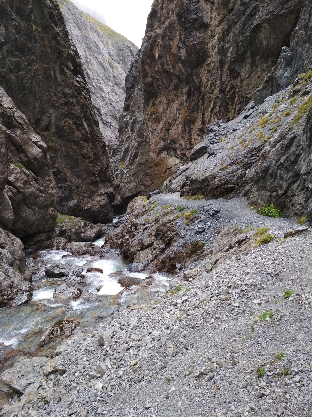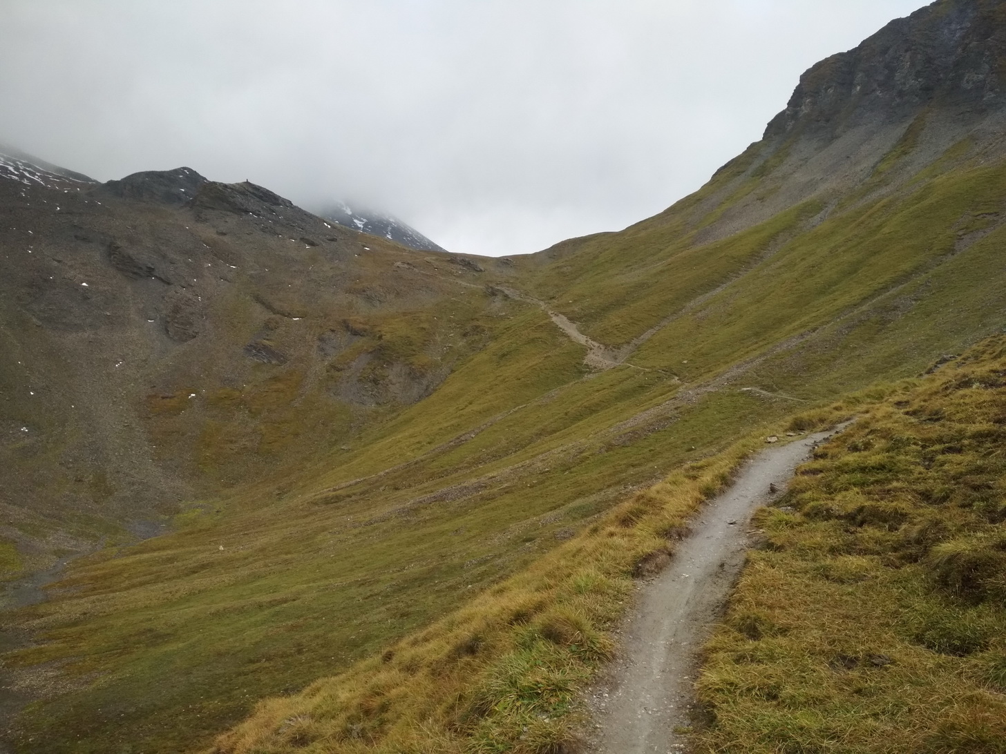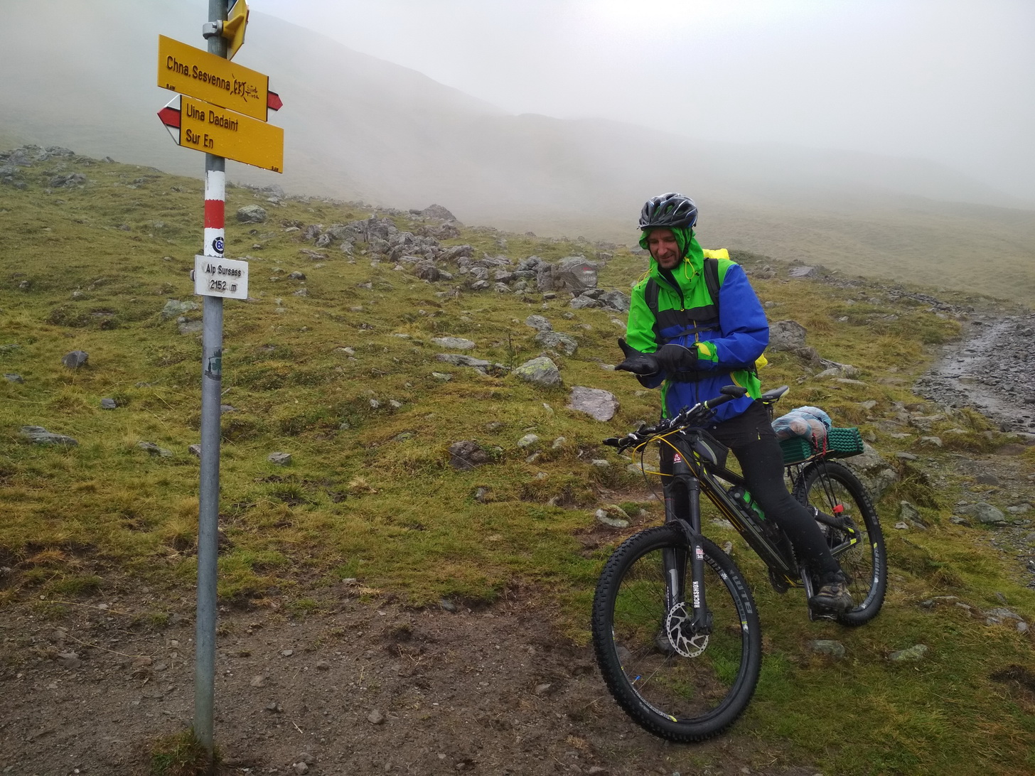 Po pohodlnej noci vyrážame do nepohodlného mrholenia a dnes nás čaká ďalší skvost našej trasy - Val Uina. Prešli sme cez sedlo Alp Sursass 2152 m.n.m. v hmle a mrholení a Val Uina ozaj stála zato. Je to pecka a nie je to zas až také nezjazdné, ak nato máte morál. Zjazd je opäť dlhý - rýchle šotoliny až k rieke Inn do dedinky Sur En do výšky 1100 m.n.m. Posilnení orechami začíname opäť stúpať. Treba si dávať menšie ciele, lebo ak si predstavíte, že vás čaká 1500 v.m. do sedla, tak je lepšie si dať cieľ radšej len po ďalšiu zákrutu, potom po ďalšiu, potom po strom, potom po salaš... až sa postupne dostanete do sedla Fimberpass 2608 m.n.m.