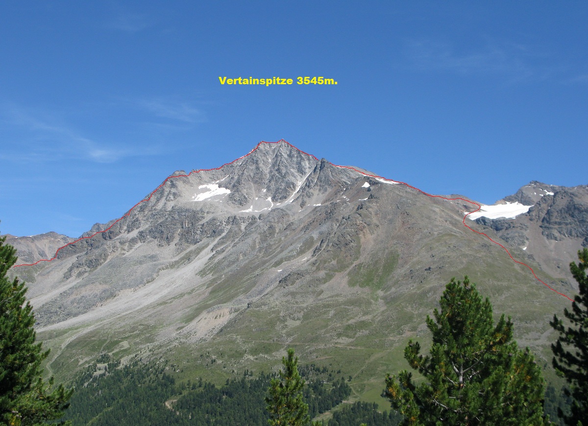Doliezam na hrebeň. Vertainspitze má dva vrcholy. Pod tým západným je tabuľka. Mladý domáci chalan sa tu zabil asi pred dvoma rokmi. Hrebeň smerom na Angelusscharte je už naozaj ako mínové pole. Ten radšej zo svojich plánov vypustím.