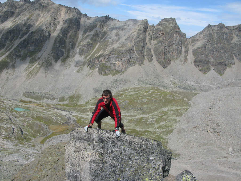 "Ale to musíš liezť na istotu štvorku!" povedal mi pred časom horský vodca Kurt, keď som mu porozprával o jednom z mojich plánov. Trvalo to teda chvíľu, kým som sa postavil pod nástup, pripravený na Westgrat. Dôvodom však nebola obtiažnosť, ale dôvod, že do Suldenu nechodím kôli horám... :-) Najťažší úsek celého hrebeňa je hneď na nástupe zaistený tenkým oceľovým lankom, prevlečeným cez skobky. Nie je to žiadna originálna ferrata, rukavice podstatne zlepšia kontakt ruky z lanom.