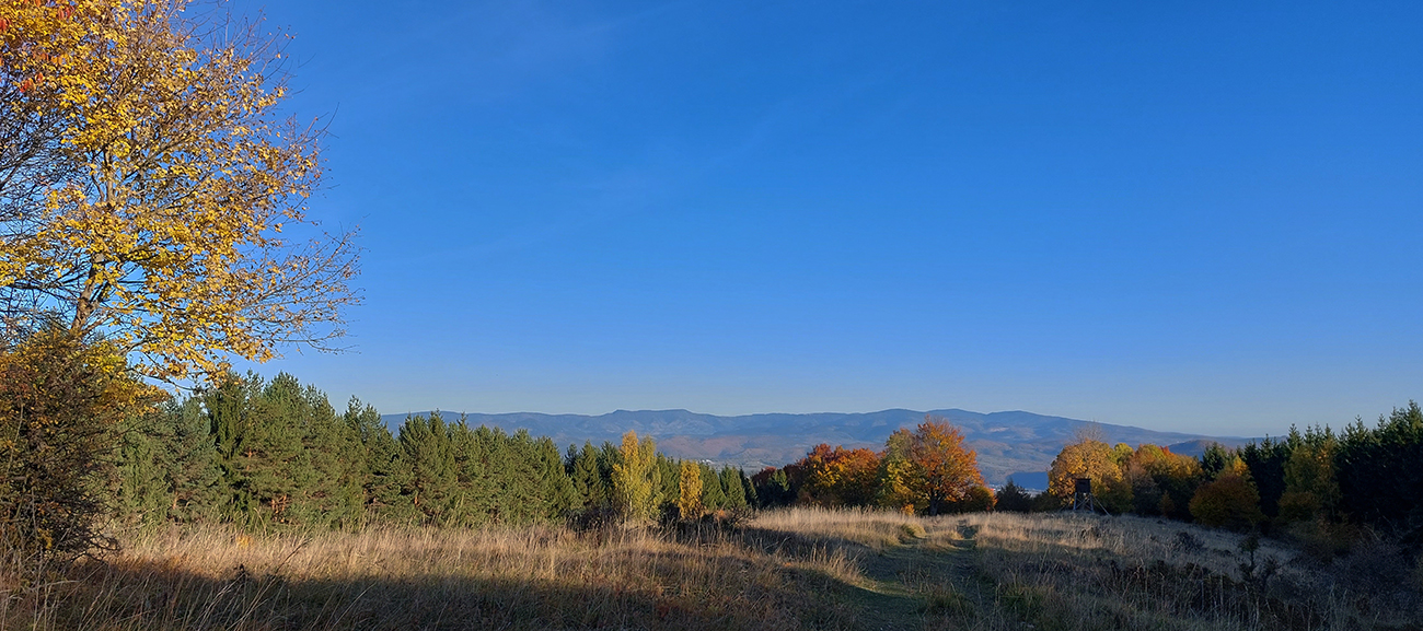 Názov hádam dobre vystihuje filozofiu tejto prechádzky. Predposledná októbrová nedeľa totiž vyšla neskutočne, čo sa počasia týka. Mrazivé ráno, obloha vymetená, vzduch ostrý, po fronte prečistený a do toho všetky farby jesene v najjasnejších odtieňoch. Jeden z tých nemnohých „superturistických“ dní, kedy hádam aj prechádzka rúbaniskom je potešením pre oko. Zaniesol ma do Kremnických vrchov, na ich západné úpätie. Potreboval som sa odtiaľ dostať do Banskej Bystrice, ale na hlavných turistických trasách isto bolo plno ľudí – preto nastúpila tá improvizácia a hľadanie kadejakých bočných a turisticky neoficiálnych cestičiek, po značkách aj mimo nich. Kremnické vrchy majú samozrejme tých možností strááášne veľa.