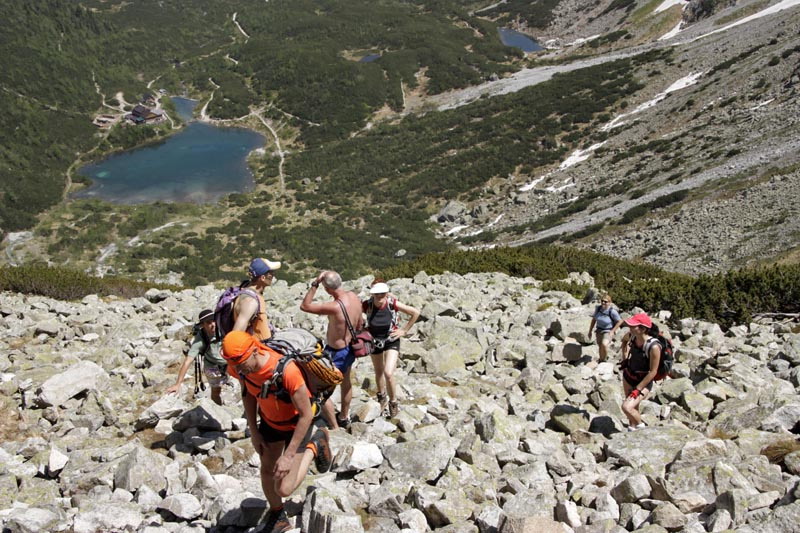 Horúce leto v Tatrách niekedy trvá len pár dní. Snáď nie poslednú slnečnú sobotu vyrážame na našu úvodnú VHT túru tejto sezóny - Čierny štít 2429m n.m. Dole pri Bielej vode sa zhlukujú autá, pripravuje sa beh do vrchu na Zelené pleso, memoriál Karla Jakeša. Kým bufetujeme na chate, pribiehajú prví spotení bežci a za nimi desiatky ďalších borcov a borkýň, v tom úpeku to mali veru ťažké, ale účasť je výborná.