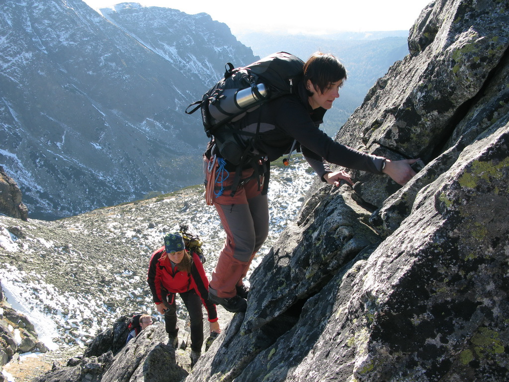 Ideme piati, čo nie je záruka rýchleho postupu, ale o to lepšej zábavy :)) V batohoch máme čelovky, povinnú to jesennú výbavu na horách. Na sebe zase kompletný lezecký výstroj.