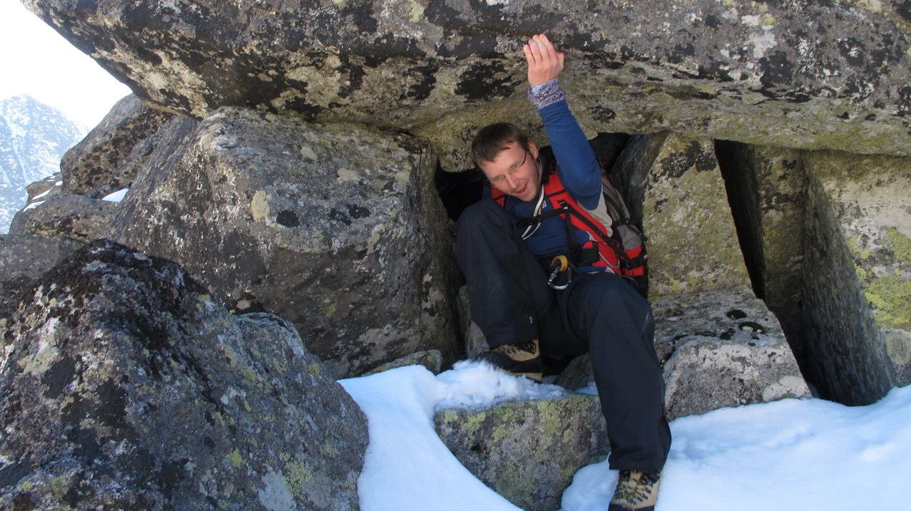 Liezť v teniskách pomedzi snehové fliačky, ktoré uberajú možnosti nájsť si chyty a stupy, je celkom zaujímavé, ale o chvíľu som hore.