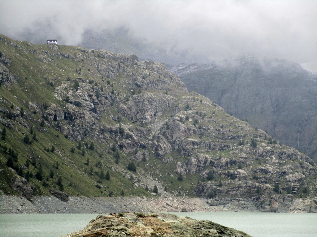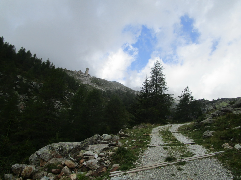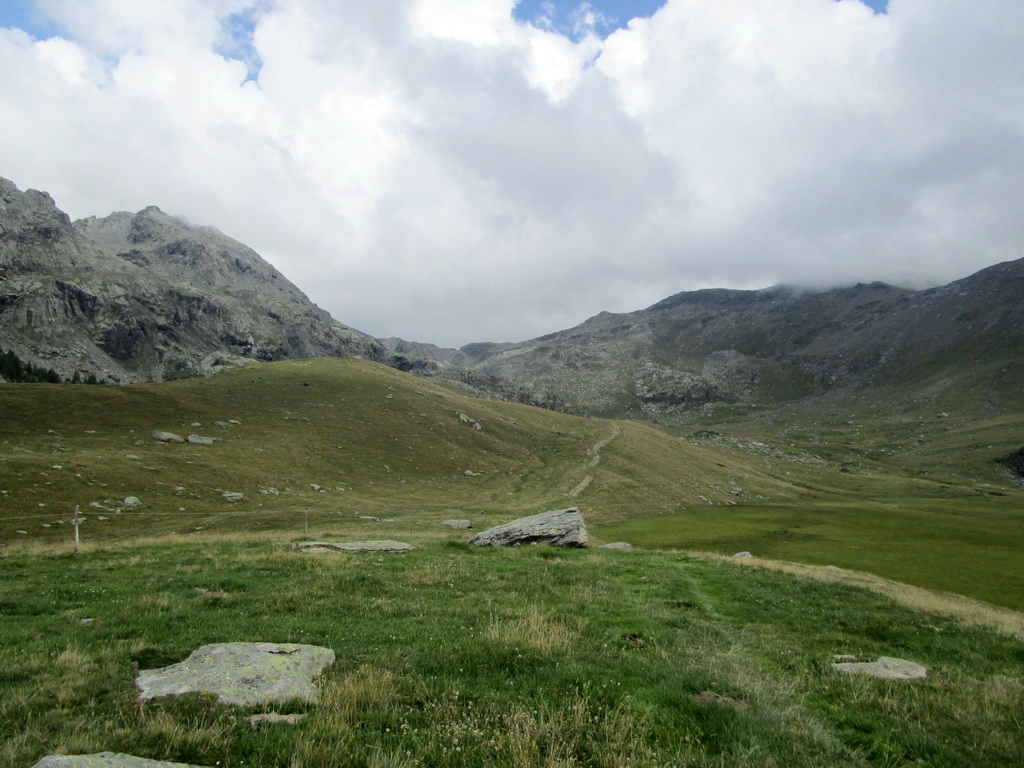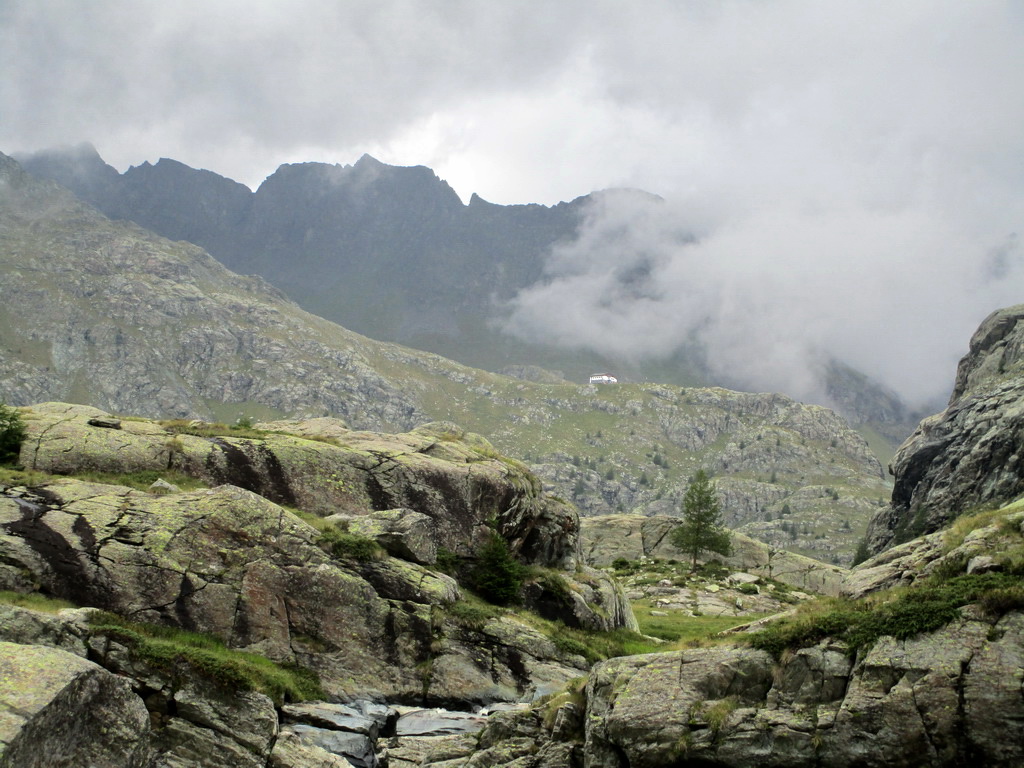 Ku priehrade pohodlne vyšliapem na bajku po asfaltke. Od priehrady do ústia doliny Poschiavina to ide tiež v sedle. Otvárajú sa mi nádherné výhľady do ústia tejto doliny. Naháňa ma síce dážď ale nemôžem prestať fotiť. Začiatok doliny je zjazdný ale čoskoro začínajú úseky s veľkými kameňmi a treba tlačiť. Záver doliny Poschivina v stúpaní do sedla Ciancian je strmý technický úsek. Oceňujem že som si zobral karbónový bajk a ľahko sa mi nesie na chrbte.