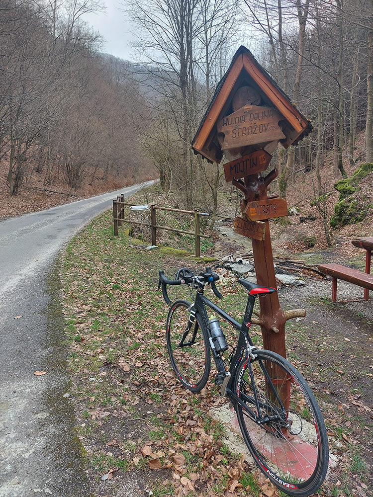 Pretože veľkonočné „násilie páchané na ženách“ nepraktikujem, vybral som sa páchať násilie aspoň na vlastnom bicykli, do centrálnej oblasti CHKO Strážovské vrchy. Vymyslel som si okruh z Považskej Bystrice - vyšlo to nakoniec asi na 90 km. Pôvodným jeho zámerom bolo najmä obzrieť niekoľko (na mape) nádherných ciest v lesoch, o ktorých som ale netušil, či sú v použiteľnom stave aj pre tenké gumy. Nejaké tie obete som bol ochotný položiť na oltár poznania, na druhej strane ale hrotiť to až do cyklokrosu som nemienil.