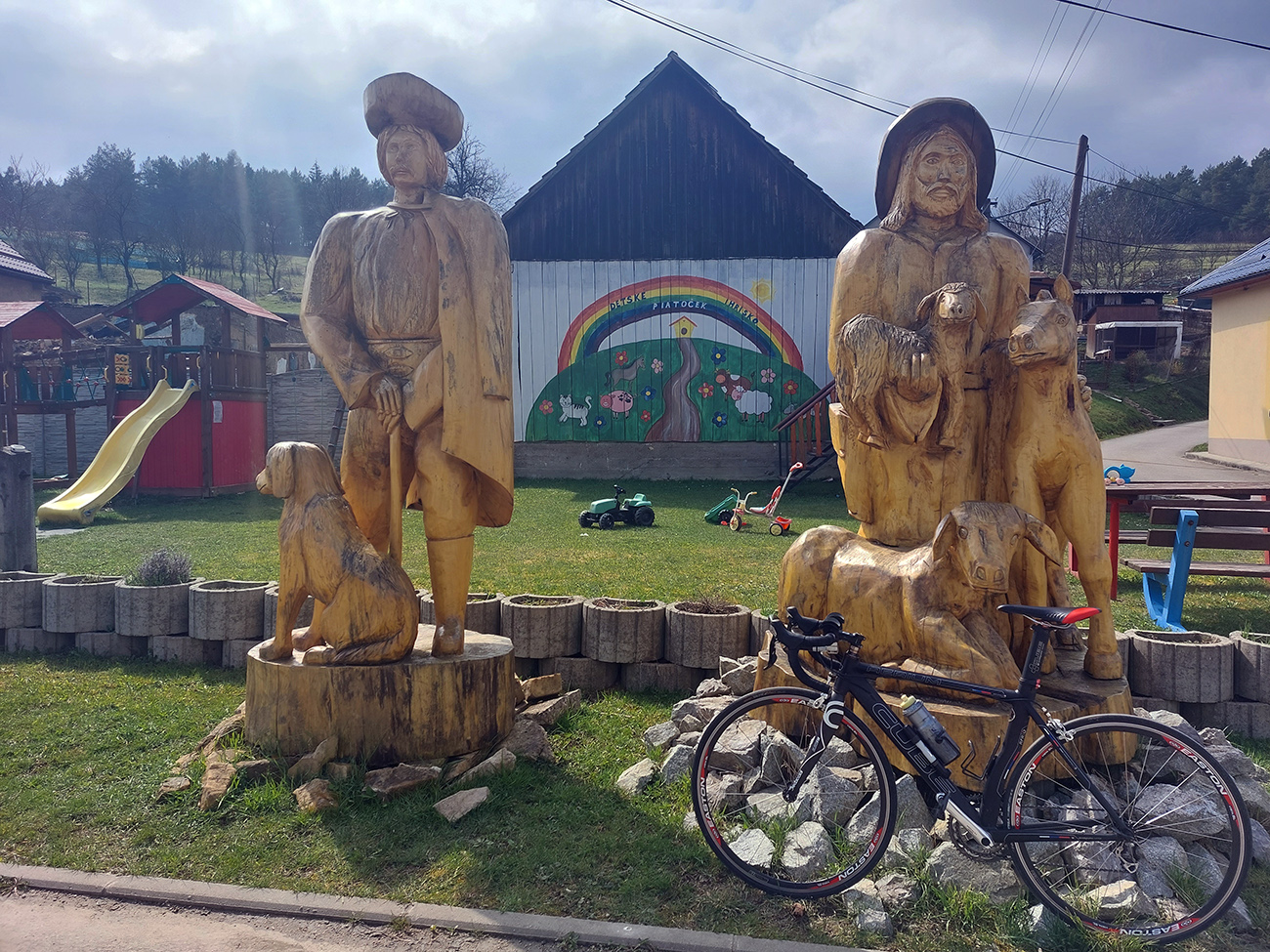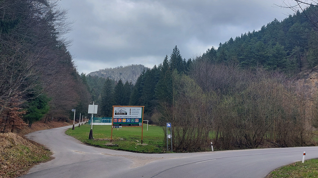 Hore som to otočil pri veľkonočne vyzdobenej zastávke autobusu a davaj nazad. Pôvodne som mal síce v pláne zokruhovať to cez Belušské Slatiny a znova cez Visolaje, ale pod tým strmým kilometrom, na odbočke do Hluchej doliny, vyzeral byť asfalt tiež prudko použiteľný, tak som radšej išiel opáčiť tam. A dobre som spravil – dolina tiež veľmi pekná, braliek a skaliek požehnane, pod kolesami hladko, stúpanie príjemné. Otočil som to tam, kde asfalt skončil – na spodnom okraji lúky, pod nejakou chatou, na skok od Zliechova: