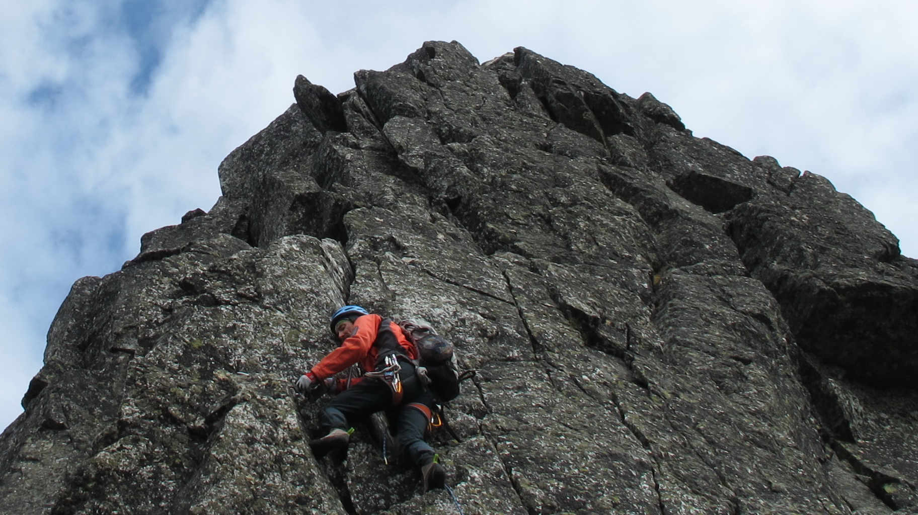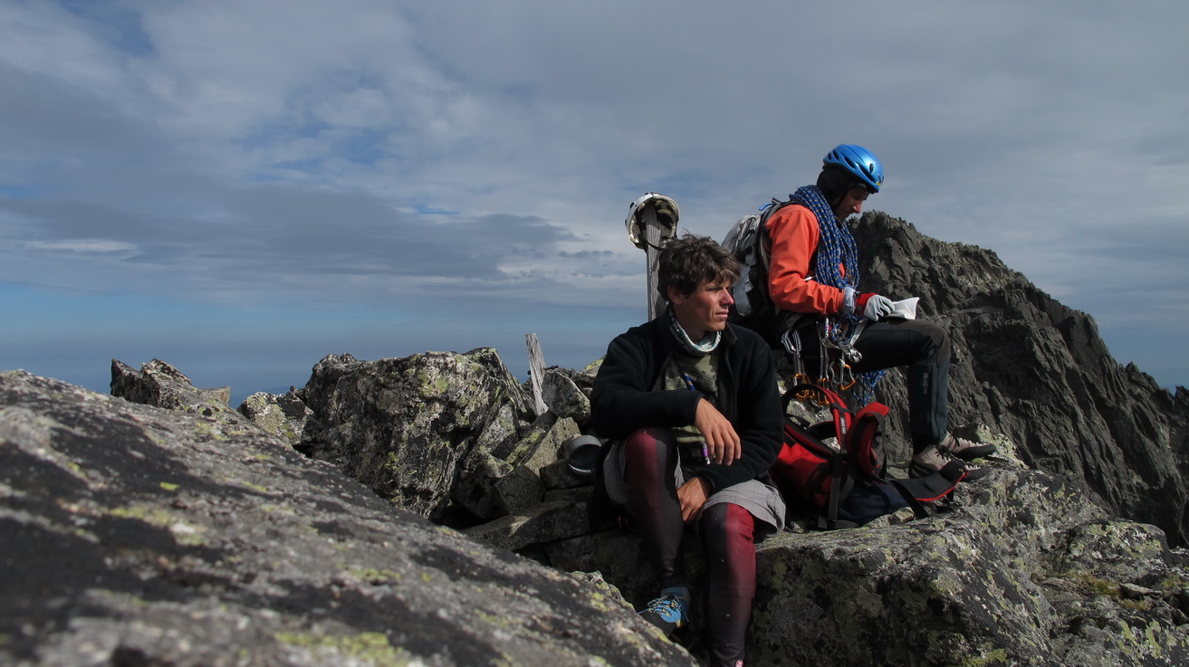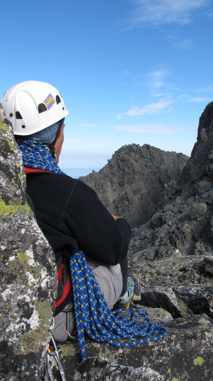 Sme pod ňou. Štandujeme a ťahám štvorkovú dĺžku na vrchol. Paráda! Cieľ je splnený! Maličká pozdĺžnosť splatená. Obloha sa vyjasňuje a nastávajú fotoorgie.