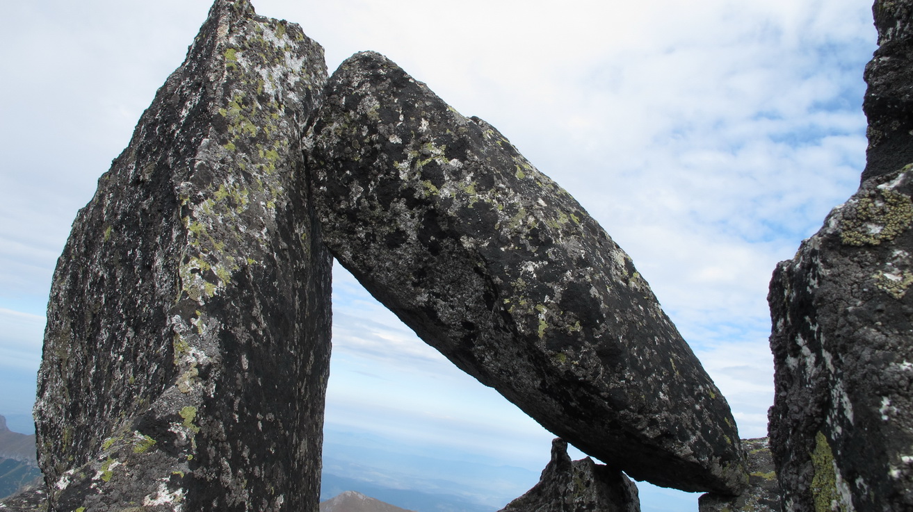 Prichádzame na tento hlavný končiar na hrebeni. Počasie ešte stále nie je to, čo hlásala predpoveď. Dokonca nás postraší pár kvapiek. Vyťahujem vrcholovú knižku a začínam v nej listovať. Je to ešte stále tá istá, čo tu bola pred rokmi. Vyniesol ju sem Vlado Tatarka (Gipsy) v roku 1996. Študujem zápisy: sú tu mnohé známe mená, kamaráti. Niektorí už s krížikmi na Symbolickom cintoríne...