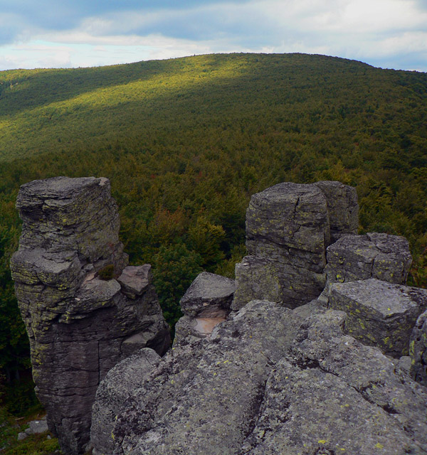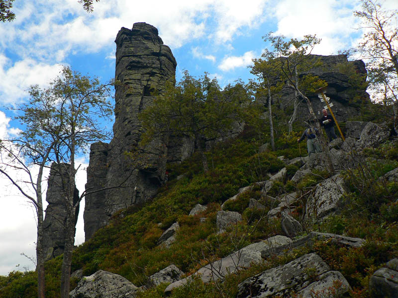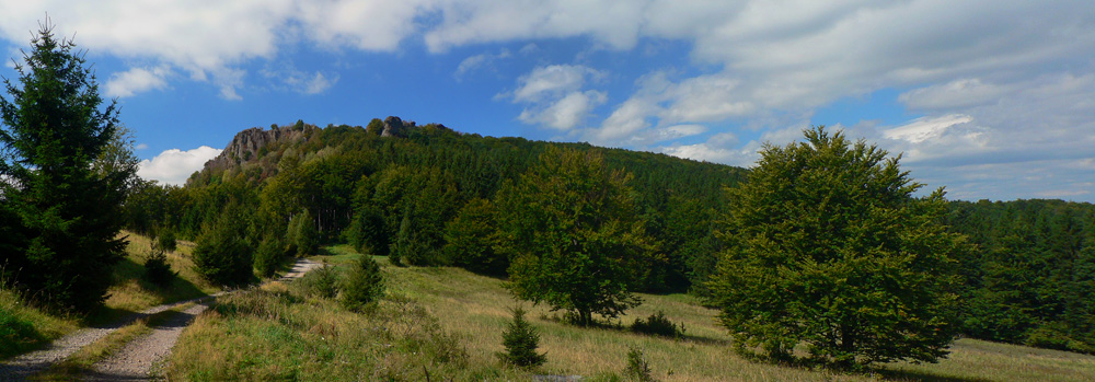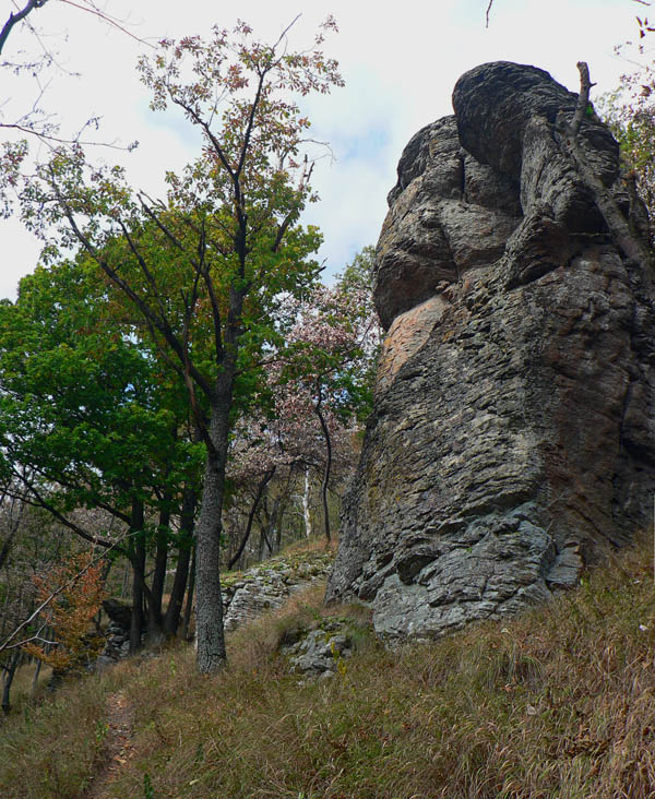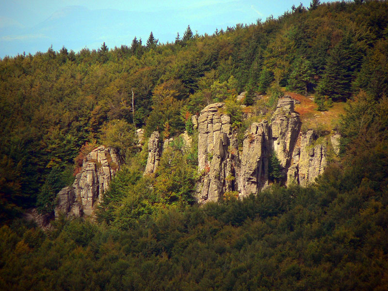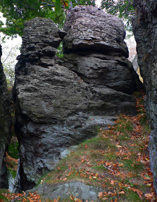 A zisťujem že som dobre spravil! Síce na začiatku jeden a pol hodiny nie veľmi záživného stúpania asfaltkou a lesom, ale od Žarnova cez Buchlov je to nádhera pomedzi skalné veže a celé skalné mestá. Pripomína to hrebeň Kremnických vrchov okolo Skalky, ale je to krajšie. Stavebný materiál je rovnaký.