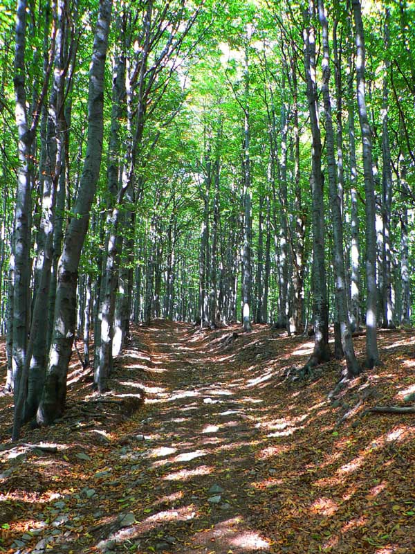 Na hrebeňovku sa pripájam po necelých 4 hodinách na Rúbanom vrchu – ten svoje meno nezaprie, vyrúbaný je poriadne. Len vrch nevidno, taká plošina je to. Odtiaľto je to vhodnejšie pre bežecké preteky alebo pre bajkerov (veď sa tam aj motali) ako pre peší pochod. Na prvý pohľad monotónne kráčanie širokým lesným „tunelom“ bez nejakých výraznejších zmien výšky. Jasné, sem - tam by bolo treba potlačiť či preniesť, ale s tým sa ráta.