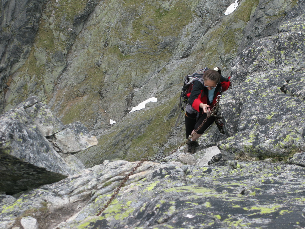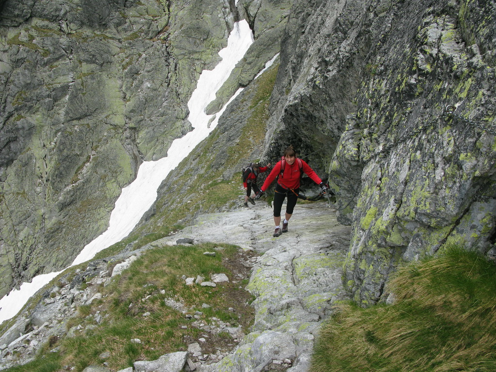 My sme si vybrali túto reťazami a kramlami zaistenú ferratu v jeden nie moc pekný júnový deň. Naším cieľom bolo z Malej Studenej doliny vystúpiť do Téryho kuloáru chodníčkom slúžiacim k nástupu na lezecké túry. Tu sme už na seba obliekli sedačky s feratovými setmi a vystúpili sme ferratou smerom hore na úbočie nad Lomnickým sedlom. Počasie nebolo vhodné na lezenie, tak sme aspoň takto dali pekný a zaujímavý okruh.