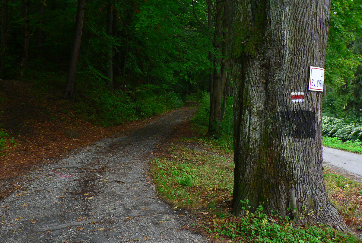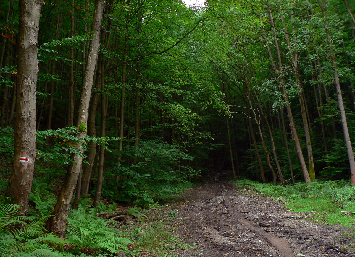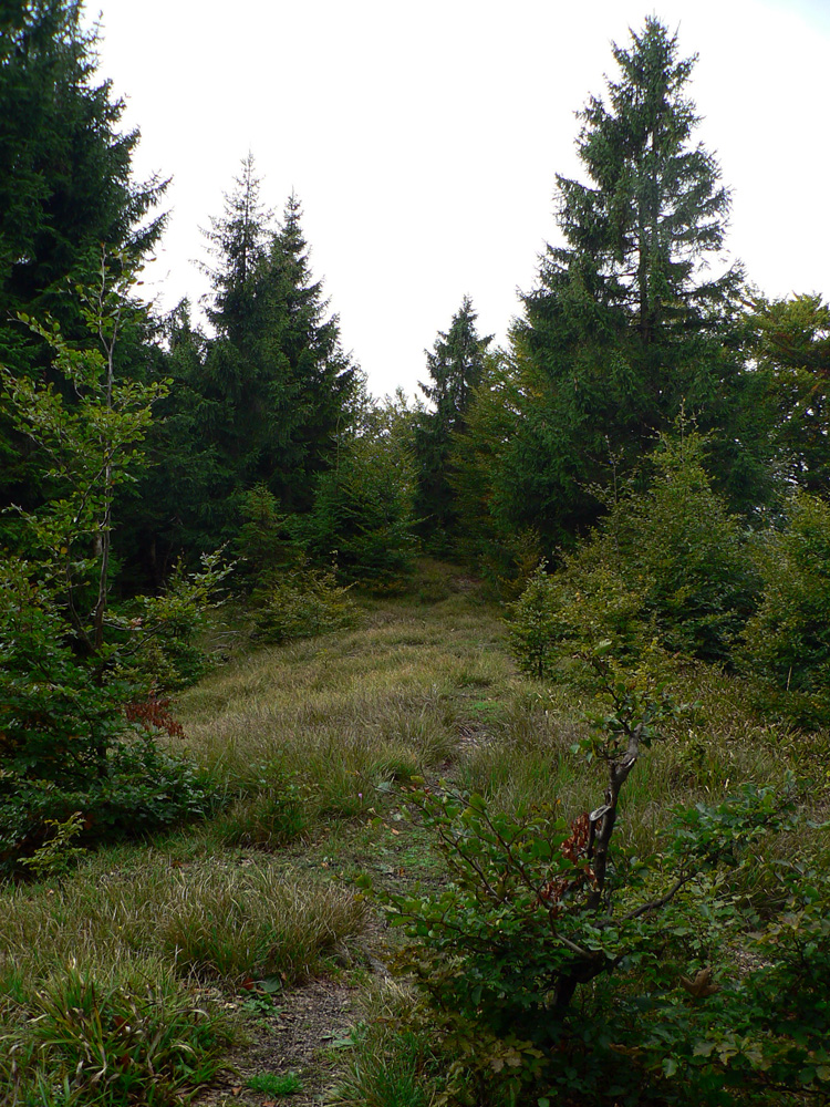 Ľubochnianske sedlo, to je kríž, smerovník, ale aj bzučiace drôty, betónová cesta, vyholené svahy, no fuj! Aj zostup do doliny začína vlhkým, blatistým výmoľom. Kedysi ale práve tadeto (a nie dolinou Váhu) viedla stará obchodná cesta od Jadranu cez Turiec na Liptov a ďalej až k Baltu, ktorú používali vari už Rimania.