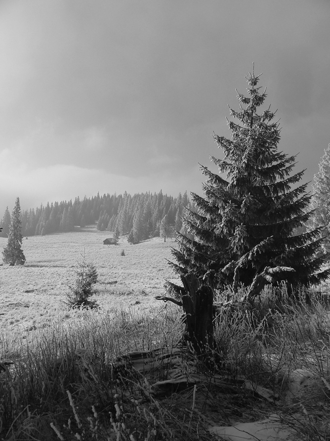 Veziem sa vlakom do Mikuláša a on zrazu medzi stanicami stojí. Pohne sa, postojí, pohne sa... A v Rybárpoli už viem, že pôvodne plánovaný bus do Žiarskej doliny nestíham, takže v RK skáčem von, lebo o 10 minút ide bus na Oravu. Z neho skáčem v Jasenovej, dnes dobyjem Choč z tejto strany :-) Improvizácia ako bič! Lenže najprv sa mne dobýja Arktída na kožu. Je asi -15 a fučí, dosť rozdiel oproti tomu, ako sa tu ešte pred pár dňami ovce pásli. Šalený január pokračuje.