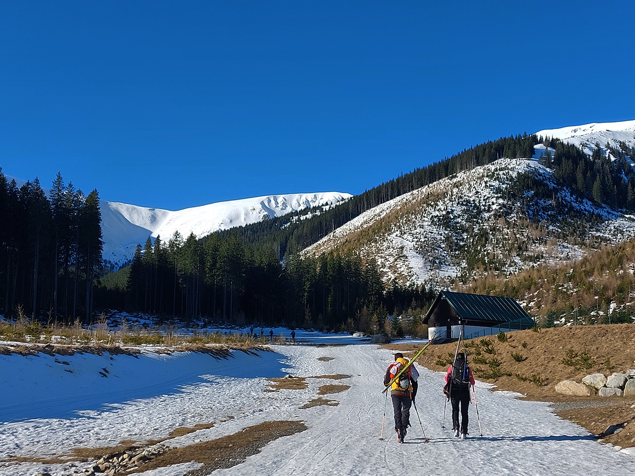 Potom sa to už zlepšilo a ako sa to otvorilo, aj sa oteplilo. Do sedla Poľany cikcaky čím vyššie, tým komfortnejšie, lebo odmäknutejšie, ale hromadne využívané boli aj pešiacke schodíky.